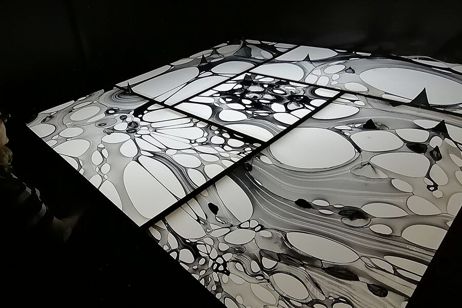 版画を刷るその時の作家の状態、刷り方、インクの載せ方などにより、刷り上がった作品は1枚1枚違う個性を持ちますが、同じ遺伝子を持つ1つの存在だと、彼女は考えています。